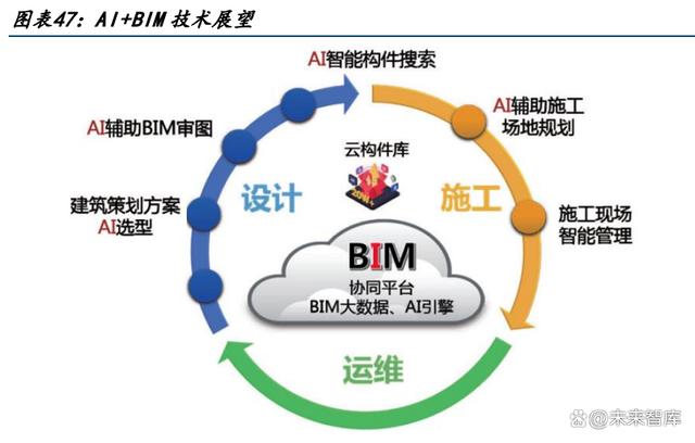 BIM 與人工智能深度融合,有望在設(shè)計(jì)、施工、運(yùn)維階段開拓應(yīng)用場(chǎng)景與解決方案。 設(shè)計(jì)階段:1)構(gòu)件智能搜索:可以在構(gòu)件智能搜索中使用人工智能對(duì)構(gòu)件進(jìn)行準(zhǔn)確 的自動(dòng)分類,以及使用自然語言理解技術(shù)實(shí)現(xiàn)構(gòu)件屬性的智能校準(zhǔn);2)AI 輔助布局 規(guī)劃:融入最新的機(jī)器學(xué)習(xí)技術(shù),可以在瀏覽器上生成建筑策劃文件,并輸出建筑空 間的最優(yōu)化布局;3)AI 輔助 BIM 審圖:AI 技術(shù)可以輔助 BIM 對(duì)大量規(guī)范、圖集、標(biāo) 準(zhǔn)以及模型、圖紙的匹配性學(xué)習(xí),做好設(shè)計(jì)合規(guī)性、合理性的把控。施工階段:進(jìn)行輔助施工場(chǎng)地規(guī)劃,AI 可以通過場(chǎng)地智能布置和合規(guī)合理性校驗(yàn)來 幫助經(jīng)驗(yàn)不足的技術(shù)人員增質(zhì)提效,通過建模對(duì)施工現(xiàn)場(chǎng)不同階段的復(fù)雜狀態(tài)進(jìn)行模 擬展示,通過數(shù)據(jù)分析及時(shí)反饋前期方案的合理性,同時(shí)反向指導(dǎo)施工組織設(shè)計(jì),進(jìn) 行資源配置優(yōu)化。 運(yùn)維階段:進(jìn)行運(yùn)維智能管理,AI 可以通過機(jī)器人和無人機(jī)等的應(yīng)用,使用大量實(shí) 際現(xiàn)場(chǎng)視頻數(shù)據(jù)進(jìn)行訓(xùn)練,對(duì)現(xiàn)場(chǎng)數(shù)據(jù)進(jìn)行分類處理和智能管理,大幅提升施工效率 和安全質(zhì)量水準(zhǔn)。