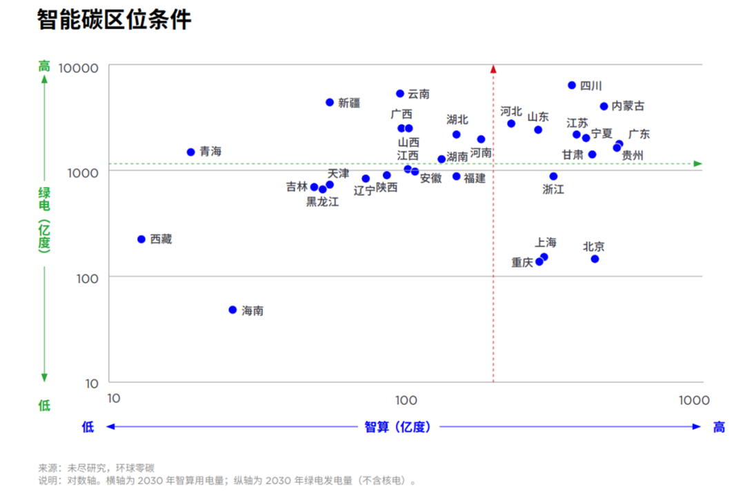 到2030年,長三角和京津冀的智算綠電壓力仍然不小,它們也是電動汽車與數(shù)字化工業(yè)對綠電需求迅速攀升的地區(qū),需要積極探索在當?shù)赝诰虬êI巷L電或核電等的清潔電力資源,完善跨省綠電交易機制;綠電優(yōu)勢明顯的省份,既可以積極響應東部地區(qū)的綠電或智算調(diào)度,還可以分別面向中亞、東南亞等地,建設綠色智能經(jīng)濟的“一帶一路”。