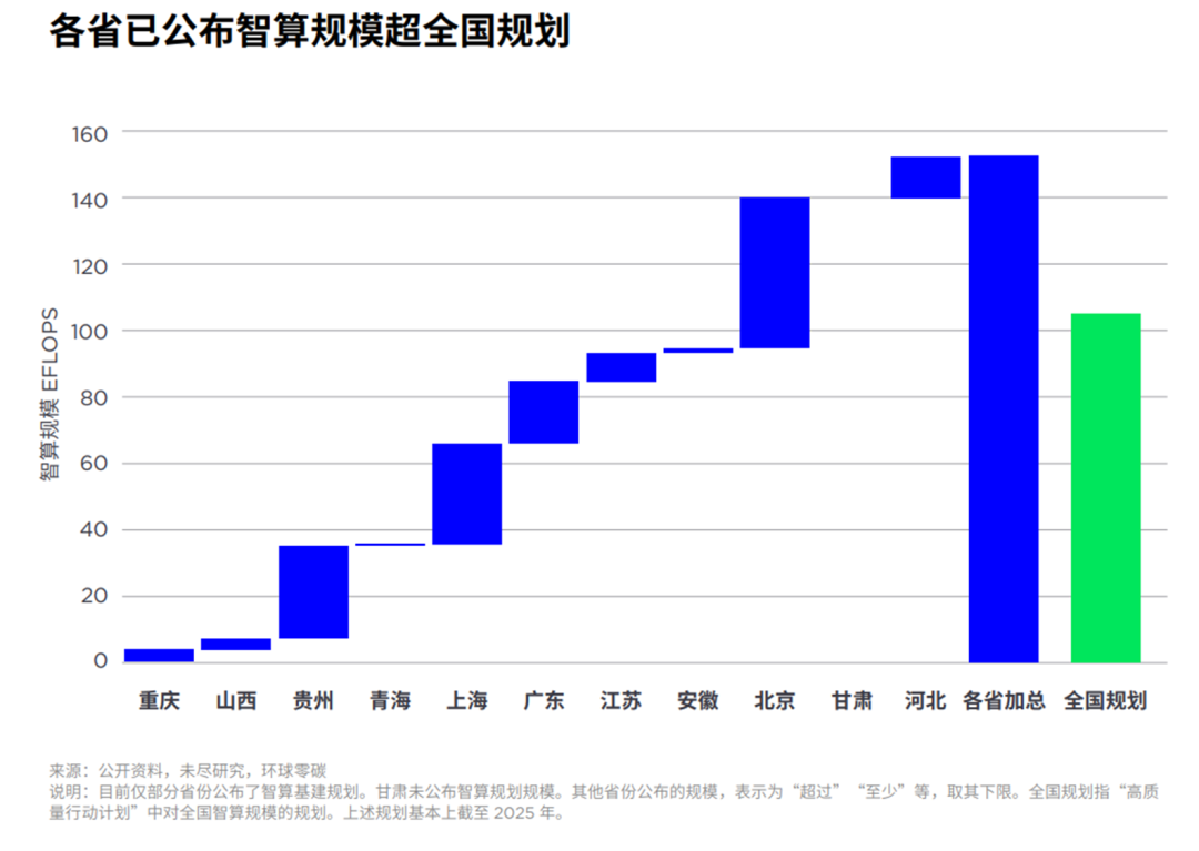 中國智能算力規(guī)模正在爆發(fā)式增長。在國家政策、市場競爭的推動下,中國各地規(guī)劃的智算規(guī)??偭?,已經(jīng)超過了全國的計劃目標;智算規(guī)模實際部署速度,也要快于計劃文件的目標。
