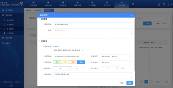 工控網(wǎng)絡(luò)入侵檢測(cè):具備入侵行為特征庫(kù),可對(duì)工控網(wǎng)絡(luò)通訊中的協(xié)議、應(yīng)用、通訊行為提供深入準(zhǔn)確的分析、檢測(cè)及安全診斷,能夠及時(shí)捕獲網(wǎng)絡(luò)異常行為,發(fā)現(xiàn)網(wǎng)絡(luò)入侵行為并分析潛在安全威脅,如:DNS隱蔽信道、反彈Shell、普通主機(jī)掃描(源IP相同)、分布式主機(jī)掃描(目的IP相同)、普通端口掃描(源IP相同)、分布式端口掃描(目的IP或端口相同)、暴力破解檢測(cè)、源與目的IP暴力破解、惡意代碼檢測(cè)等。