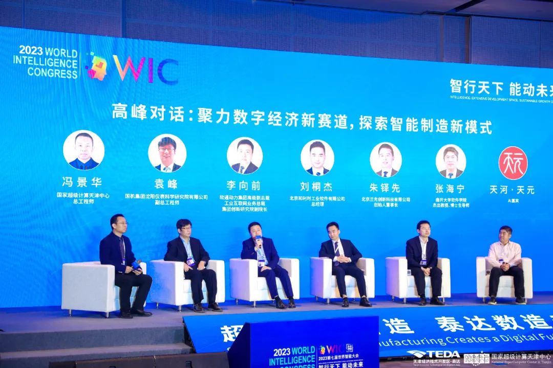 高峰對(duì)話環(huán)節(jié)由國(guó)家超級(jí)計(jì)算天津中心總工程師馮景華主持,圍繞“聚力數(shù)字經(jīng)濟(jì)新賽道,探索智能制造新模式”主題展開探討。國(guó)機(jī)集團(tuán)沈陽(yáng)儀表科學(xué)研究院有限公司副總工程師袁峰;軟通動(dòng)力集團(tuán)高級(jí)副總裁,工業(yè)互聯(lián)網(wǎng)業(yè)務(wù)總裁,集團(tuán)創(chuàng)新研究院副院長(zhǎng)、李向前;北京和利時(shí)工業(yè)軟件有限公司總經(jīng)理、劉桐杰;北京蘭光創(chuàng)新科技有限公司創(chuàng)始人、董事長(zhǎng),朱鐸先;南開大學(xué)軟件學(xué)院、杰出教授、博士生導(dǎo)師、張海寧;以及神秘的 AI 嘉賓-天河·天元,現(xiàn)場(chǎng)共話智能制造新模式,推動(dòng)數(shù)字經(jīng)濟(jì)發(fā)展。
