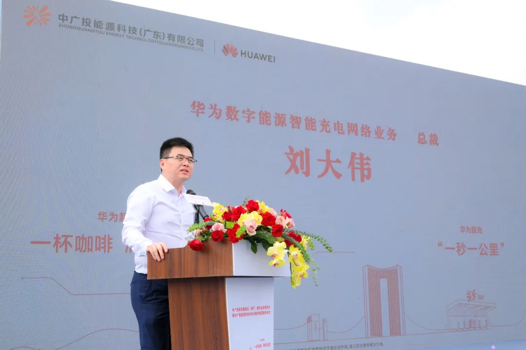 華為數(shù)字能源智能充電業(yè)務(wù)總裁劉大偉在儀式上致辭