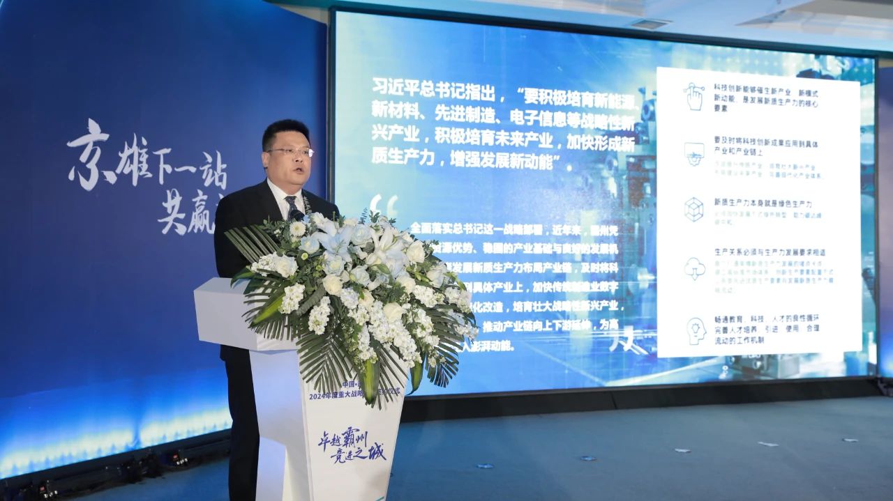 簽約儀式前,霸州市政府市長張淼介紹項目情況,華為公司副總裁、數(shù)據(jù)存儲產(chǎn)品線總裁周躍峰發(fā)言。