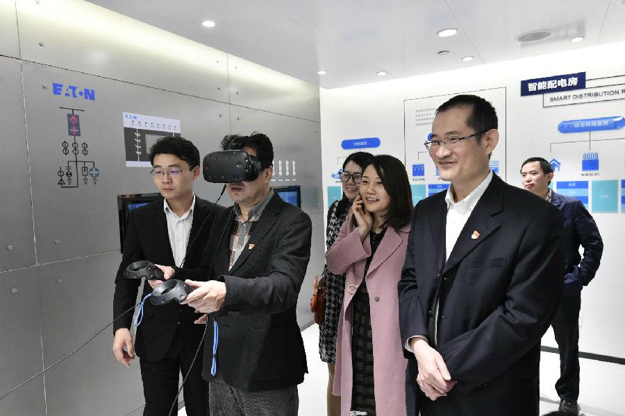佩戴VR眼鏡即可揭開智能配電房神秘的面紗,享受沉浸式的觀影體驗(yàn);在書房通過手指觸動“跳一跳”游戲即可身臨其境體驗(yàn)一度電的使用過程......這些以往只能在腦海里幻想的場景,如今變得可觀可感。