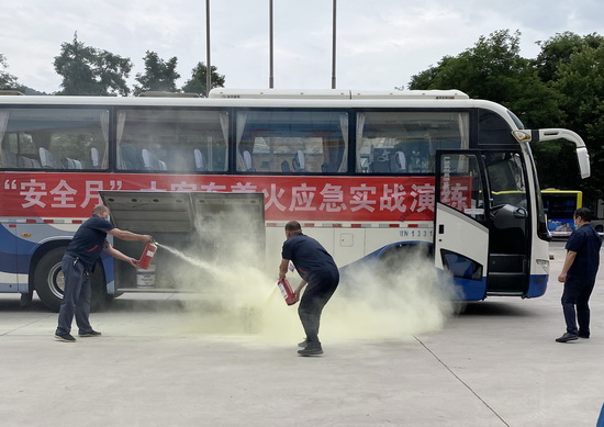 在演練時,隨著滿載乘客的大客車行駛至劉電賓館門前,突然行李艙起火,大客車駕駛員在突然遇火險緊急情況下,立即開啟應(yīng)急雙閃燈,靠邊停車,打開車門,迅速引導(dǎo)車內(nèi)乘客有序疏散,并要求大家用濕毛巾捂住口鼻,彎腰依次撤離到車外安全地帶。緊接著滅火組演練人員迅速行動起來,熟練地取出車載滅火器,拔下滅火器安全銷,用噴口對準(zhǔn)火源根部,及時將火撲滅,救護(hù)組及時疏散和救援下車人員,并對傷員身體狀況進(jìn)行基本護(hù)理和檢查。整個演練過程既緊張,又有條不紊,進(jìn)一步增強了全體員工的安全意識,真正掌握了交通工具突發(fā)火險后迅速逃生、自救、互救的基本方法,達(dá)到了演練的預(yù)期目的。
