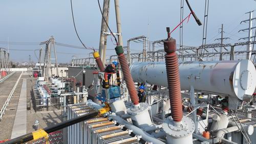 圖為3月26日,該公司人員對220千伏健康變開展主變及開關(guān)例行試驗(yàn)、設(shè)備維護(hù)等操作。