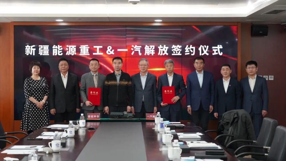 1月14日,一汽解放汽車有限公司(簡稱“一汽解放”)與新疆能源重工科創(chuàng)有限責(zé)任公司(簡稱“新疆能源重工”)在長春簽署1000輛采購框架協(xié)議,全面深化戰(zhàn)略合作伙伴關(guān)系。新疆能源集團銷售 (產(chǎn)業(yè)鏈) 公司黨委書記、董事長王凱,新疆能源重工科創(chuàng)有限責(zé)任公司副董事長瞿猛、總經(jīng)理姜李明,中國一汽總經(jīng)理助理、一汽解放董事長、黨委書記胡漢杰,一汽解放常務(wù)副總經(jīng)理于長信出席簽約儀式。