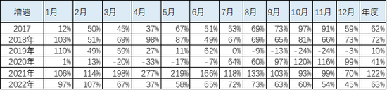 2022年新能源車的銷量增速超強(qiáng)起步,1-2月保持倍增的高速增長,3-5月增速偏低,6-12月的增速是逐步改善的。