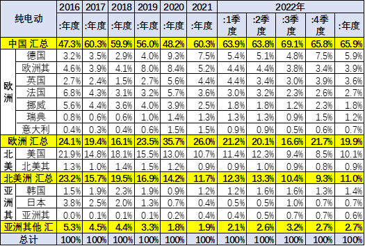 此處具體分析特意不包含商用車市場分析,主要是世界新能源的卡車與客車主要銷量基本在中國,而且疫情后新能源客車處于萎縮中,雖然增大一點中國份額,但容易誤導(dǎo)趨勢的分析,意義不大,因此此文第二部分開始的分析只包含乘用車。