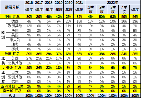 歐洲的插電混動份額從2018年的28%,上升到2020年的65%,又下降到2022年的35%的水平。