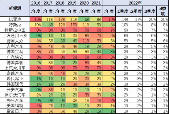2、各廠家新能源車份額走勢