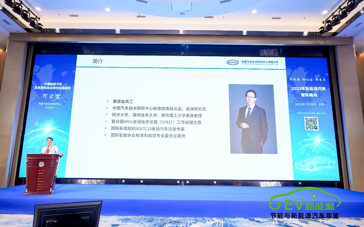 峰會(huì)現(xiàn)場(chǎng),中國汽車技術(shù)研究中心有限公司標(biāo)準(zhǔn)院高級(jí)總監(jiān)、資深研究員何云堂發(fā)表了《中國氫能汽車及系統(tǒng)標(biāo)準(zhǔn)法規(guī)的發(fā)展趨勢(shì)》主旨報(bào)告。該報(bào)告分享了中國燃料電池汽車標(biāo)準(zhǔn)和聯(lián)合國燃料電池汽車全球技術(shù)法規(guī)等內(nèi)容,并對(duì)重點(diǎn)標(biāo)準(zhǔn)進(jìn)行了解讀。
