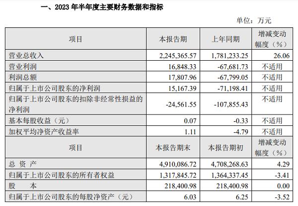 中國經濟網8月7日訊(記者 陳夢宇)據(jù)安徽江淮汽車集團股份有限公司(證券代碼:600418 證券簡稱:江淮汽車)日前發(fā)布的業(yè)績快報顯示,今年上半年,集團營業(yè)總收入224.54億元,同比增長26.06%;營業(yè)利潤達到1.68億元,去年同期虧損6.77億元;利潤總額為1.78億元,去年同期虧損6.78億元;歸屬于上市公司股東的凈利潤為1.52億元,去年同期虧損7.12億元,不過,該項利潤扣除非經常性損益后仍虧損2.46億元,去年虧損額為10.79億元。
