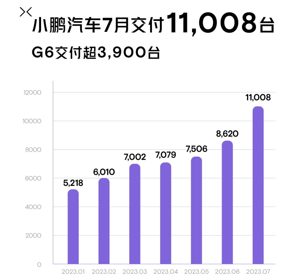 7月,小鵬汽車共交付新車11008輛,環(huán)比增長28%,不僅連續(xù)六個月實現(xiàn)了正增長,且月銷量終于重回萬輛大關。