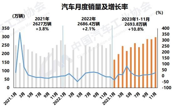 綜合前11個(gè)月,我國(guó)汽車產(chǎn)銷分別完成2711.1萬(wàn)輛和2693.8萬(wàn)輛,同比分別增長(zhǎng)10%和10.8%,增速較1-10月分別提升2和1.7個(gè)百分點(diǎn)。由此,今年1-11月,汽車產(chǎn)銷量超過(guò)了去年全年的2702.1萬(wàn)輛和2686.4萬(wàn)輛。