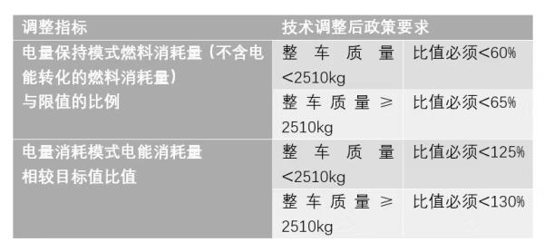 除純電新能源車之外,對于銷量同樣火爆的插電式混合動力(含增程式)乘用車,《技術(shù)要求公告》也上調(diào)了技術(shù)指標(biāo)。如下圖所示: