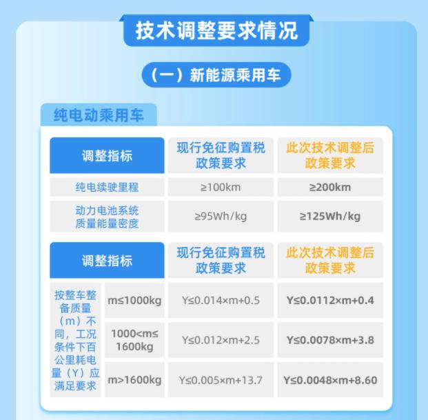 2023年12月11日,工信部、財政部、稅務總局三部門聯(lián)合發(fā)布《關于調整減免車輛購置稅新能源汽車產(chǎn)品技術要求的公告》(下稱12月最新公告),更新了享受減免車輛購置稅的新能源汽車產(chǎn)品的技術要求,提升了整車能耗、續(xù)駛里程等多項指標,明確了換電模式車型的相關要求。
