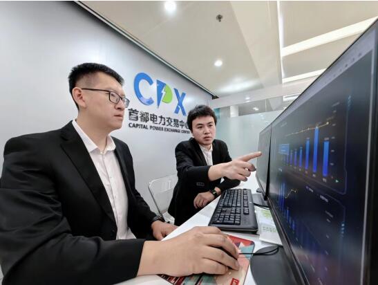 圖為首都電力交易中心工作人員對運營數(shù)據(jù)進行分析。