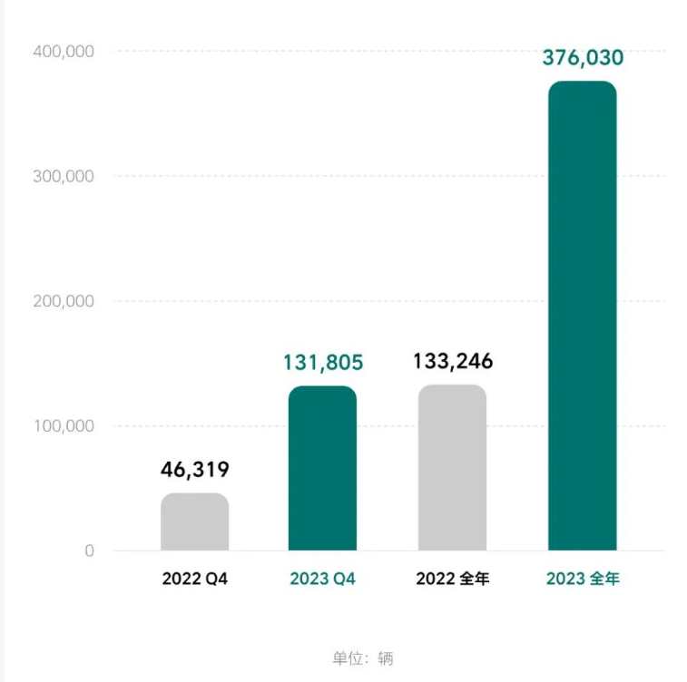 理想汽車扭虧為盈的背后是交付量的強(qiáng)勁增長(zhǎng)。2023年,理想汽車交付新車37.6萬輛,同比增長(zhǎng)182.2%,超額完成年度30萬輛的交付目標(biāo),奪得2023年新勢(shì)力“銷冠”。其中,四季度交付13.18萬輛,同比增長(zhǎng)184.6%,超此前交付指引。