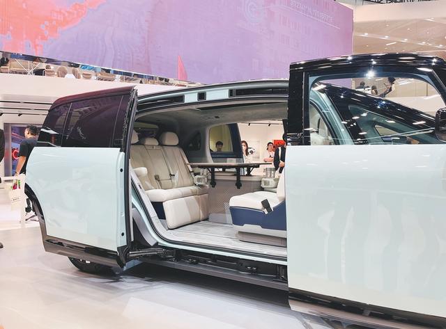 北京車展期間,國(guó)產(chǎn)電動(dòng)車品牌展示新款MPV車型。(視覺中國(guó))