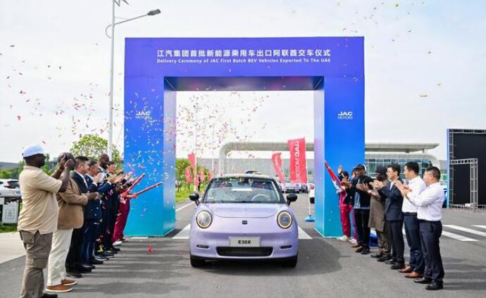 5月22日,首批釔為3出口阿聯(lián)酋交車(chē)儀式在江淮釔為智慧工廠舉行。