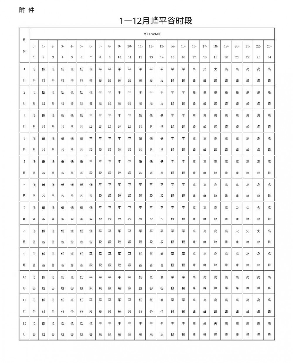 6—8月,高峰(含尖峰)時(shí)段16:00至24:00,其中尖峰時(shí)段為7月和8月的20:00至23:00;低谷時(shí)段0:00至7:00,其他時(shí)段為平段。具體時(shí)段詳見附件。