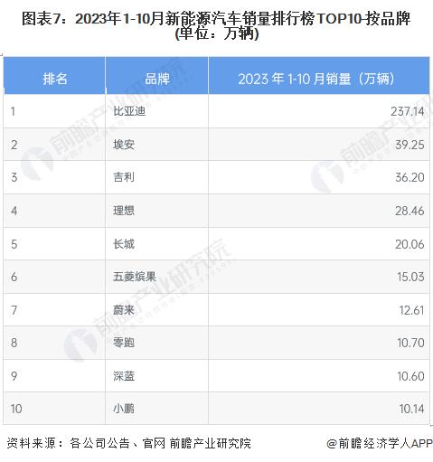 從銷(xiāo)量方面來(lái)看,2023年1至10月,我國(guó)新能源汽車(chē)銷(xiāo)量第一名的品牌為比亞迪,以237.14萬(wàn)輛遙遙領(lǐng)先全行業(yè)。第二名為廣汽埃安,銷(xiāo)量為39.25萬(wàn)輛;第三名為吉利汽車(chē),銷(xiāo)量為36.20萬(wàn)輛。造車(chē)新勢(shì)力三大車(chē)企中,理想排名第四,銷(xiāo)量為28.46萬(wàn)萬(wàn)輛,小鵬排名第十,銷(xiāo)量為10.14萬(wàn)輛,蔚來(lái)排名七,銷(xiāo)量為12.61萬(wàn)輛??傮w來(lái)看,2023年1至10月,傳統(tǒng)車(chē)企新能源汽車(chē)銷(xiāo)量總體好于造車(chē)新勢(shì)力。
