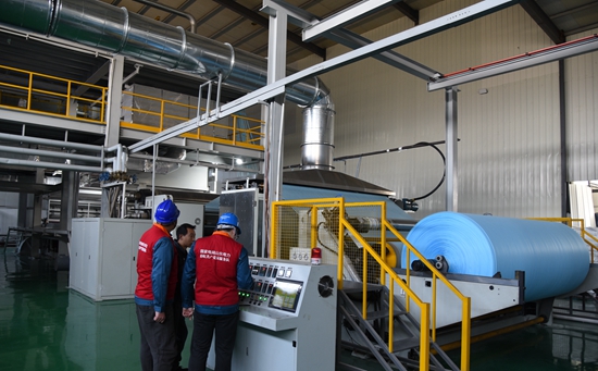臺(tái)頭鎮(zhèn)是全國(guó)重要的醫(yī)用無(wú)紡布生產(chǎn)基地,全鎮(zhèn)有大大小小40余家醫(yī)用無(wú)紡布生產(chǎn)企業(yè),肩負(fù)著為全國(guó)口罩生產(chǎn)企業(yè)提供原材料的重要生產(chǎn)任務(wù)。