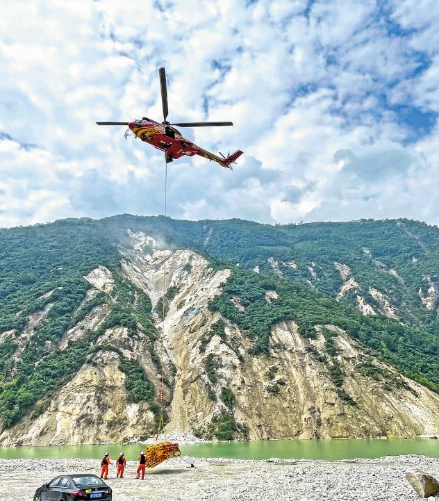 “直升機已起飛,山上卸貨人員做好準(zhǔn)備。”9月12日10時36分,在四川省石棉縣王崗坪鄉(xiāng)愛國村,看到直升機在起吊點順利起吊第一批貨物,國網(wǎng)四川電力送變電建設(shè)有限公司搶險隊隊長易實立刻通過衛(wèi)星電話,對在山頂110千伏唐下線29號塔位的隊員徐慶明說。