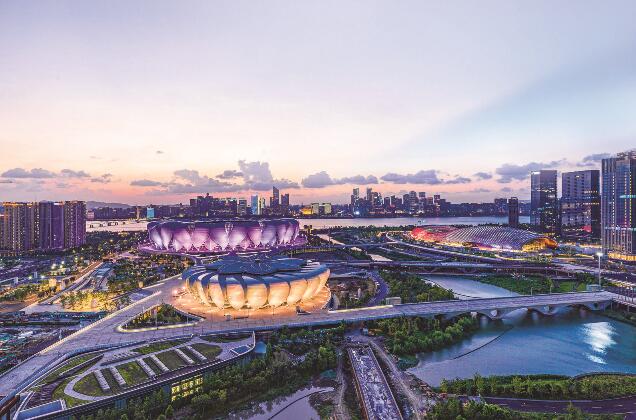 杭州亞運會場館燈火璀璨。丁豪 攝