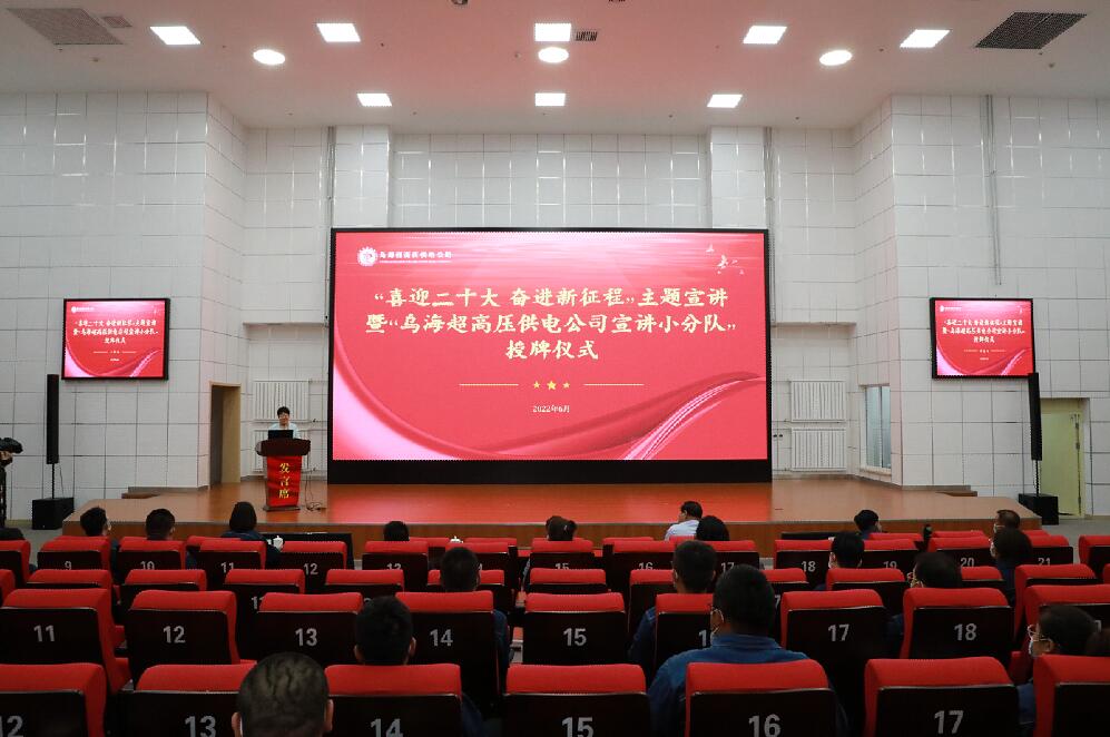 中國電力網(wǎng)訊 為深入宣傳貫徹好習(xí)近平新時代中國特色社會主義思想,持續(xù)加強(qiáng)新時代黨的創(chuàng)新理論宣傳普及工作,推動宣講隊伍建設(shè),讓黨的創(chuàng)新理論“飛入尋常百姓家”,喜迎二十大的召開。6月9日,烏海超高壓供電公司舉行“喜迎二十大 奮進(jìn)新征程”主題宣講活動暨“烏海超高壓供電公司宣講小分隊”授牌儀式。烏海市委宣傳部相關(guān)領(lǐng)導(dǎo)為宣講小分隊授牌。