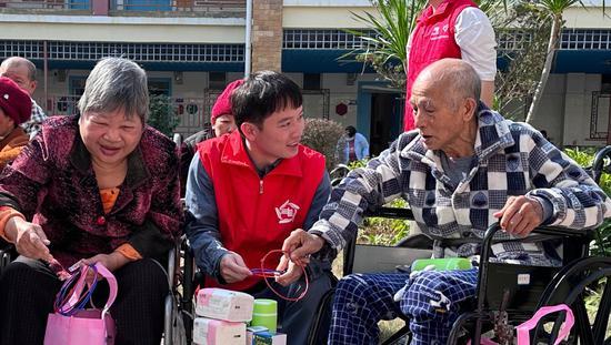 志愿者為老人們表演文藝節(jié)目。閉玉婕 攝