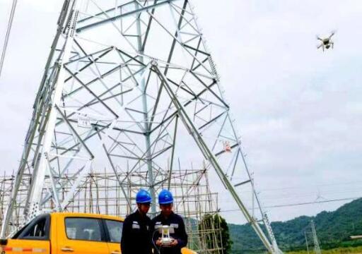 圖為廣東陽江供電局輸電所職工利用無人機查驗沙扒海上風電接入線路。