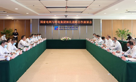 本網(wǎng)訊 7月6日,國家電網(wǎng)有限公司董事長、黨組書記辛保安與哈爾濱電氣集團有限公司董事長、黨委書記曹志安會談,并共同出席戰(zhàn)略合作協(xié)議簽約儀式。雙方表示,要深入學(xué)習(xí)貫徹習(xí)近平總書記重要講話和指示精神,落實黨中央、國務(wù)院決策部署,完整、準(zhǔn)確、全面貫徹新發(fā)展理念,積極服務(wù)和融入新發(fā)展格局,合力開展技術(shù)攻關(guān),加快構(gòu)建新型電力系統(tǒng),為推動能源轉(zhuǎn)型、建設(shè)能源強國貢獻力量,以實際行動迎接黨的二十大勝利召開。黑龍江省委常委、副省長王一新參加相關(guān)活動,哈電集團副總經(jīng)理、黨委常委張英健參加會談及簽約。公司副總經(jīng)理、黨組成員潘敬東,哈電集團副總經(jīng)理、黨委常委沈同代表雙方簽署合作協(xié)議。