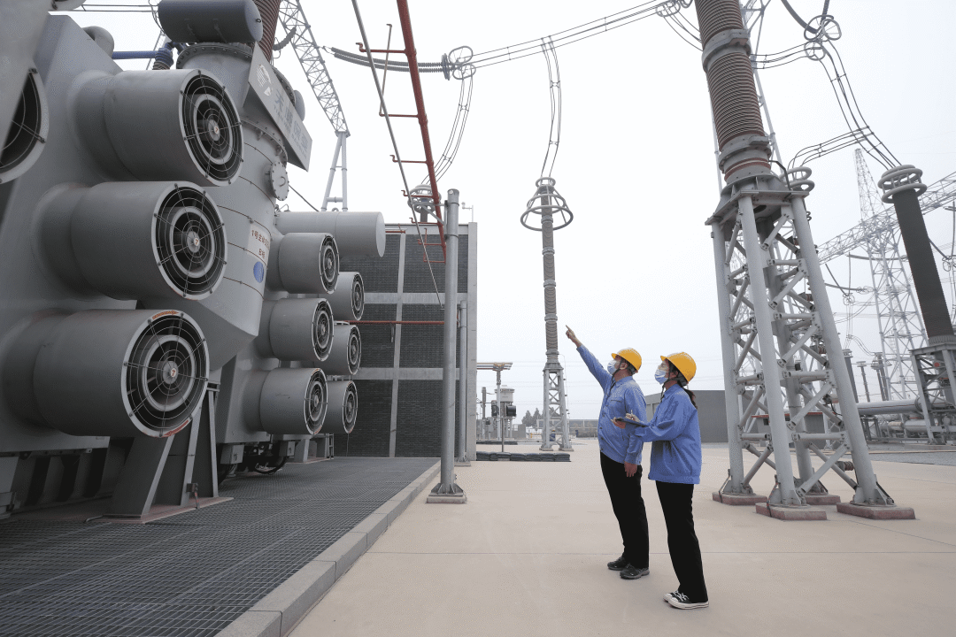 國(guó)網(wǎng)河北電力員工在1000千伏雄安變電站開(kāi)展迎峰度夏設(shè)備特巡。