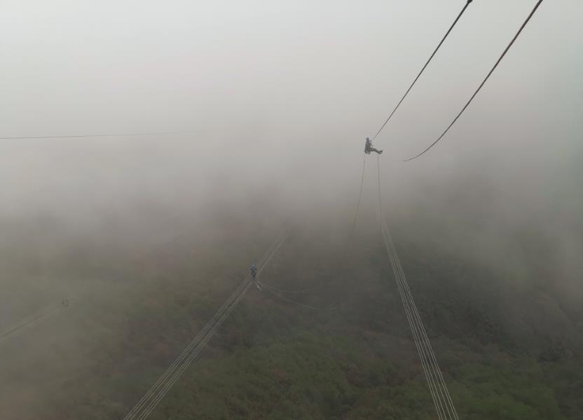 寒潮前夕,南方電網(wǎng)超高壓公司柳州局輸電所檢修人員頂著寒風(fēng)在架空地線上懸空開展500千伏桂山乙線55#大號(hào)側(cè)架空地線復(fù)合光纜補(bǔ)強(qiáng)工作,確保在即將到來(lái)的雨雪冰凍天氣中覆冰監(jiān)測(cè)裝置及整條線路保持安全運(yùn)行。