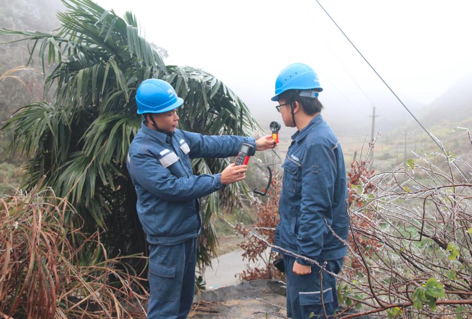 “線路有輕微覆冰,鐵塔塔基穩(wěn)固,螺絲沒(méi)有松動(dòng)。”12月1日,南方電網(wǎng)廣東韶關(guān)乳源供電局陳宇飛等人冒著凍雨來(lái)到大橋鎮(zhèn)中沖、三元、紅云等村莊,重點(diǎn)對(duì)高海拔地區(qū)、山頂、大風(fēng)口等特殊地段鐵塔和線路覆冰情況進(jìn)行巡視檢查,及時(shí)處置線路覆冰,確保通電正常。