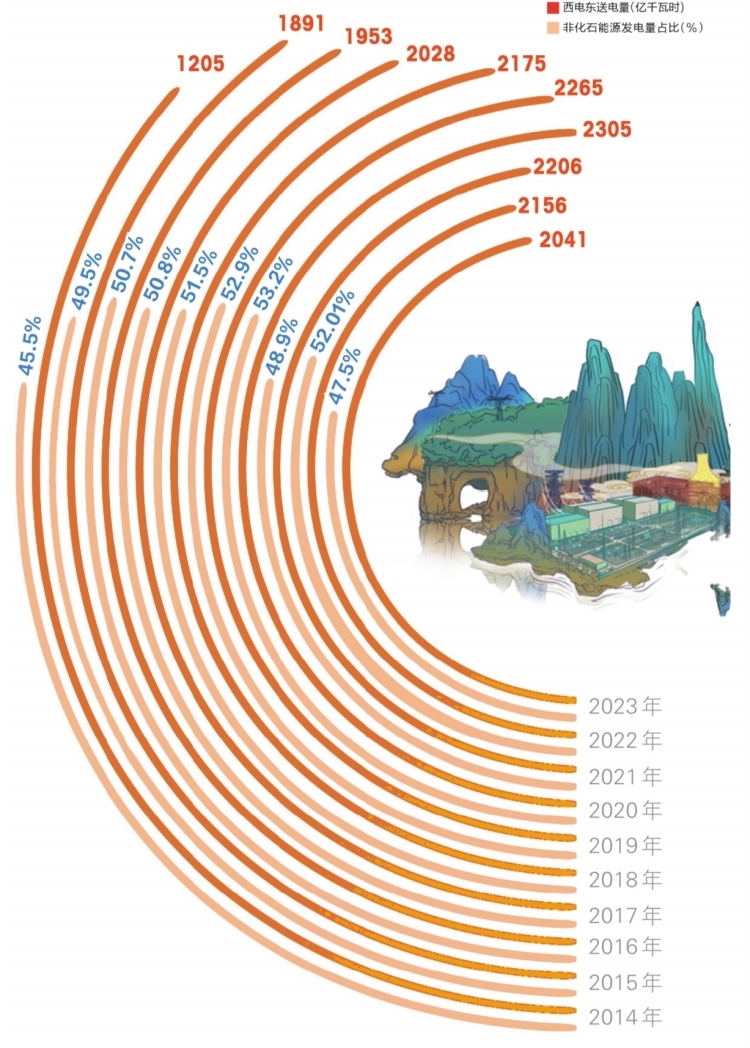 2014—2023年,南方五省區(qū)非化石能源發(fā)電量增長(zhǎng)4272億千瓦時(shí),達(dá)到7685億千瓦,年平均增長(zhǎng)率達(dá)到9%,發(fā)電量占比增長(zhǎng)到48%,高于全國(guó)平均水平13.7個(gè)百分點(diǎn)。南方電網(wǎng)系統(tǒng)調(diào)節(jié)能力顯著提升,為能源結(jié)構(gòu)綠色低碳轉(zhuǎn)型奠定堅(jiān)實(shí)基礎(chǔ)。