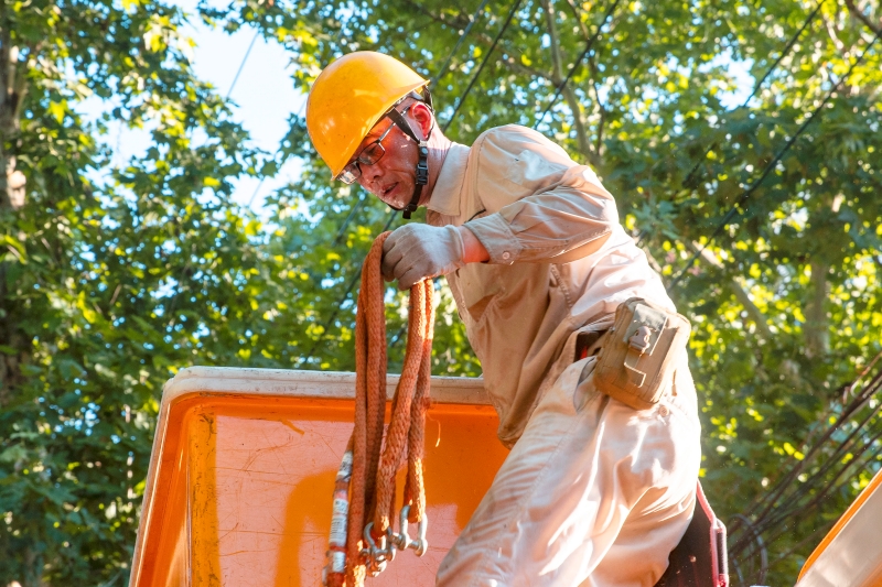 國(guó)網(wǎng)安徽滁州供電公司員工在南譙區(qū)水銀山莊開展不停電檢修作業(yè)。