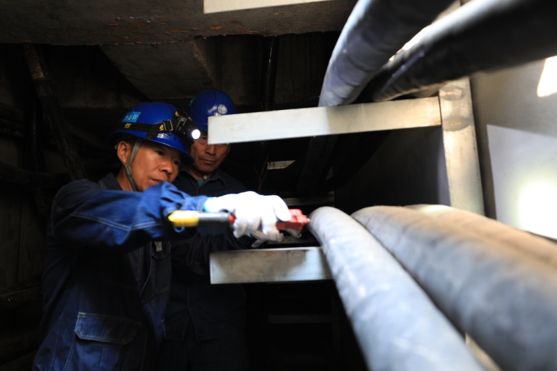 國(guó)網(wǎng)黑龍江大興安嶺供電公司員工檢查紅旗線10千伏電纜運(yùn)行情況。