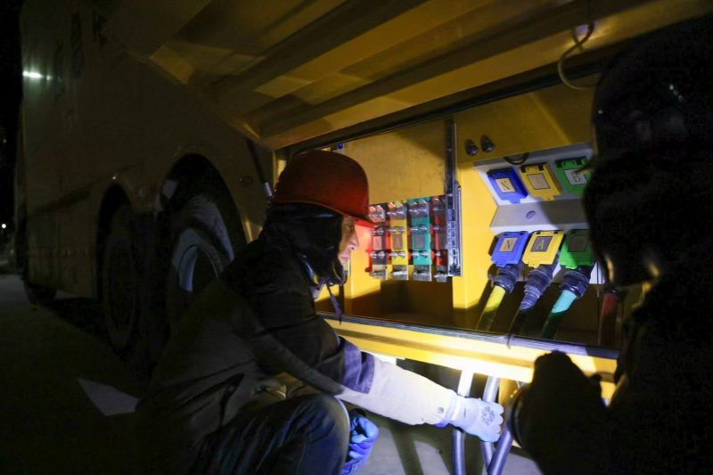 ▲國網(wǎng)西藏電力員工冒嚴(yán)寒連夜開展應(yīng)急搶險工作