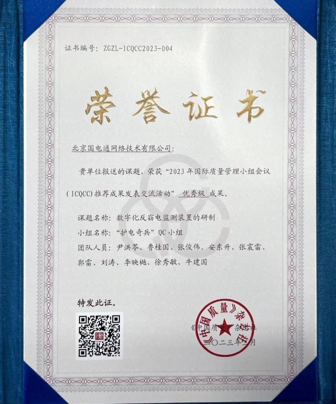 國網(wǎng)信產(chǎn)國電通“護電奇兵”QC小組成果獲國際質量管理小組優(yōu)秀獎