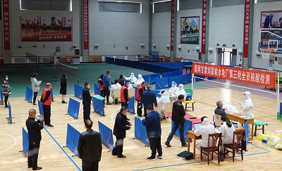 早上8時(shí)起,該廠體育館里工作人員、醫(yī)護(hù)人員和志愿者紛紛忙碌起來,布置采樣桌,擺放電腦,連接網(wǎng)線,檢測區(qū)域設(shè)置一米間隔。體育館外,等待檢測的人員攜帶工作證、身份證排隊(duì),由該廠黨員干部、志愿者組成的引導(dǎo)人員在現(xiàn)場維持秩序,提醒待檢測人員注意間隔、避免扎堆。9時(shí)起,檢測工作正式開始,志愿者引導(dǎo)待檢人員分組進(jìn)入檢測現(xiàn)場、有序進(jìn)行登記,醫(yī)護(hù)人員“全副武裝”,身著防護(hù)服、護(hù)面罩,為大家采集咽拭子。檢測現(xiàn)場設(shè)置十分合理,大家都站在一米間隔線上,隊(duì)伍有序順暢,檢測速度大幅提升。