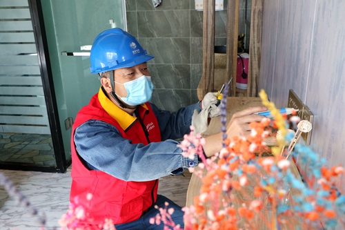 “還好你們提前過來給我們檢查了,這間房的插座和熱水器都沒電,你們給幫忙修一修。”說完該公司黨員服務(wù)隊便拿出來工具開始“修”,不一會兒,熱水器便開始燒水了。“我這里的房間現(xiàn)在基本上已經(jīng)被預(yù)定了,多虧你們來檢查用電了。” 緣居客棧負(fù)責(zé)人看著正在更換插座的黨員服務(wù)隊隊員感激地說道。