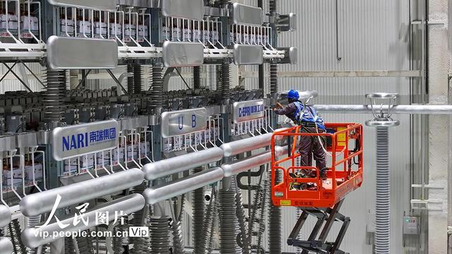 據(jù)悉,±800千伏姑蘇換流站是我國實(shí)施“西電東送”戰(zhàn)略的重點(diǎn)工程,起于四川省涼山州布拖縣,止于江蘇省蘇州常熟市,途經(jīng)四川、重慶、湖北、安徽、江蘇5省(直轄市),線路全長2080公里。該站每年將為華東地區(qū)輸送電力超過312億千瓦時(shí),減少發(fā)電用煤1400萬噸,減排二氧化碳2542萬噸,促進(jìn)全國能源資源的進(jìn)一步優(yōu)化配置,推動(dòng)綠色發(fā)展。史俊攝(人民圖片網(wǎng))