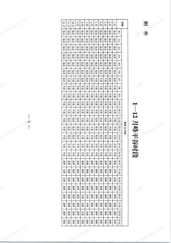6—8月,高峰(含尖峰)時(shí)段16:00至24:00,其中尖峰時(shí)段為7月和8月的20:00至23:00;低谷時(shí)段0:00至6:00,其他時(shí)段為平段。具體時(shí)段詳見附件。