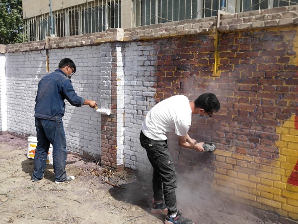 烈日當(dāng)頭,33℃的高溫絲毫沒有影響到大家干活的熱情。修繕路基的男生們和著水泥、手拿磚塊堆砌出一條筆直的長線;清理墻面的男生也不甘示弱拿著鋼絲刷,拎著裝滿油漆的白桶、滾筒刷來到圍墻外清理墻面;打掃庭院的女孩們拿著手中的勞動工具攀高爬下、忙忙碌碌。到了午休時分,為保質(zhì)保量完成任務(wù),張志龍,作為墻面清理負(fù)責(zé)人的他,選擇獨自留下,汗水一遍又一遍打濕他身穿的工作服,各色的粉塵混合著白色的油漆落在他的身上。他說:“今天雖然很累很辛苦,但看到俺們自己的勞動成果,能給大家創(chuàng)造好的環(huán)境,我覺得很有意義”。言辭之間,他充滿著自豪和快樂。直到晚上快十點,完成門口的墻面粉刷任務(wù),幾個人才帶著一身的泥土回家吃飯。