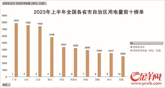 從省份來看,作為全國經(jīng)濟第一大省,廣東的用電量一直處于全國前列。今年上半年,廣東以3823.19億千瓦時的用電量再次位列全國第一。除了廣東的用電量穩(wěn)居第一外,今年上半年,在經(jīng)濟大省中,山東、江蘇、浙江依然是“榜上有名”的“用電大戶”,上半年全社會用電量分別為2845.6億千瓦、2875億千瓦、2050.1億千瓦,增速分別為3.28%、5.3%、5.39%。