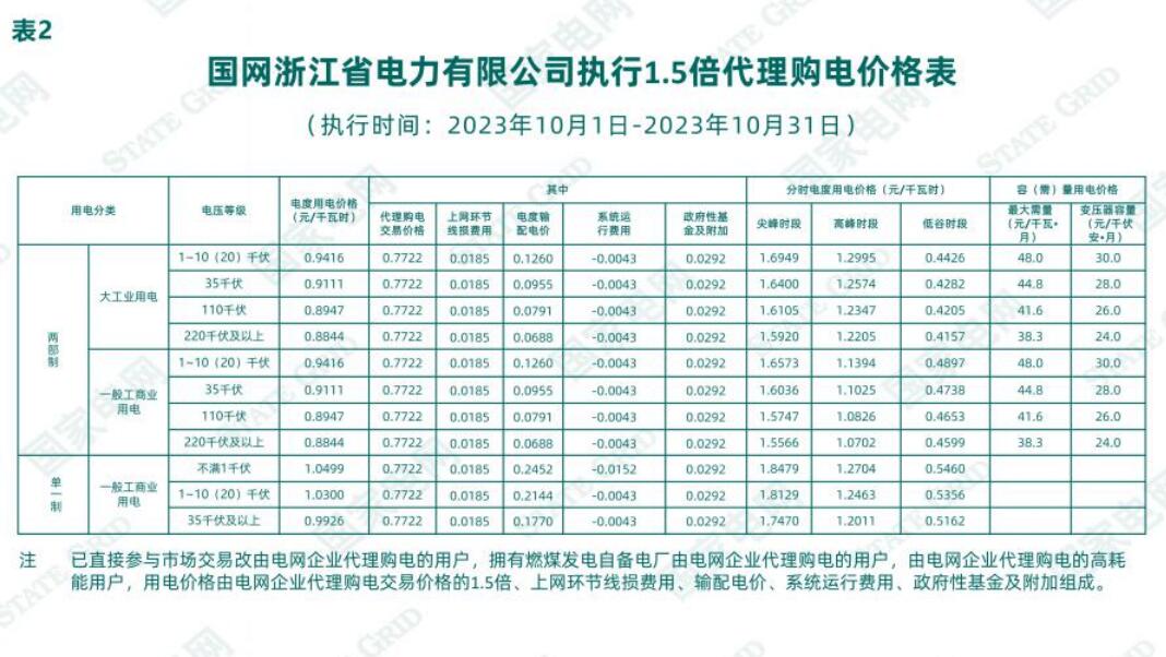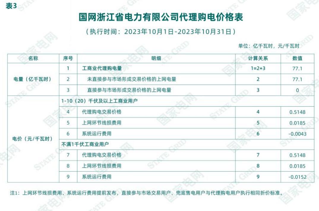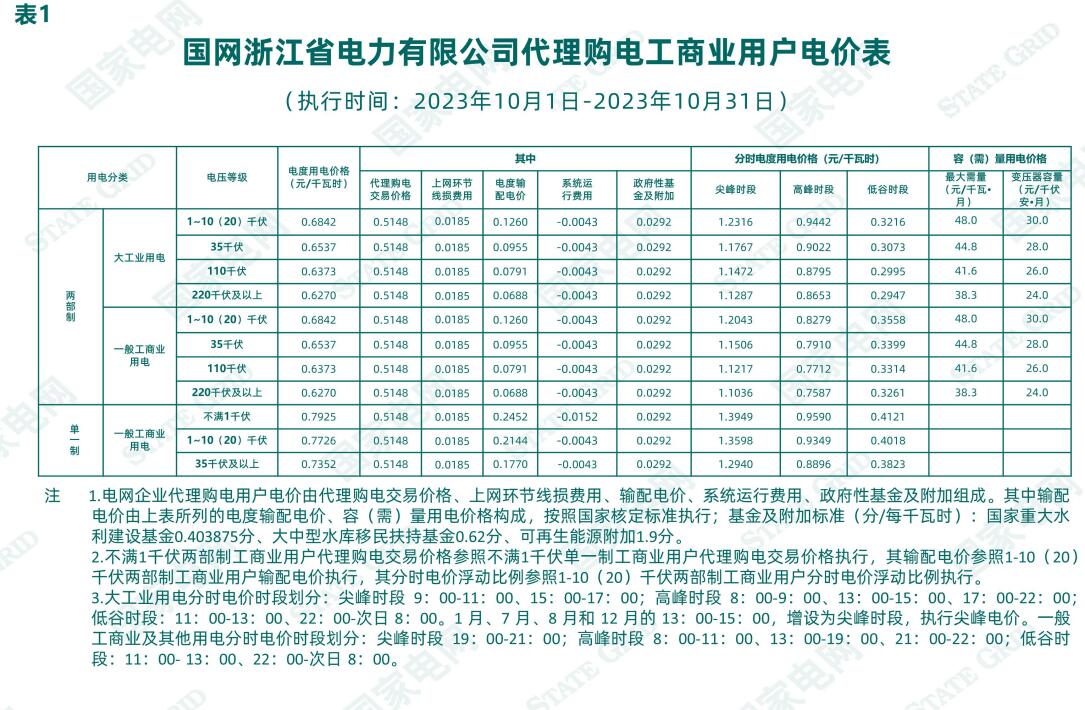 根據(jù)《國家發(fā)展改革委關(guān)于第三監(jiān)管周期省級電網(wǎng)輸配電價(jià)及有關(guān)事項(xiàng)的通知》(發(fā)改價(jià)格〔2023〕526號)、《國家發(fā)展改革委辦公廳關(guān)于進(jìn)一步做好電網(wǎng)企業(yè)代理購電工作的通知》(發(fā)改辦價(jià)格〔2022〕1047號)、《省發(fā)展改革委關(guān)于轉(zhuǎn)發(fā)<國家發(fā)展改革委關(guān)于第三監(jiān)管周期省級電網(wǎng)輸配電價(jià)及有關(guān)事項(xiàng)的通知>的通知》(浙發(fā)改價(jià)格〔2023〕139號)、《省發(fā)展改革委關(guān)于轉(zhuǎn)發(fā)〈國家發(fā)展改革委辦公廳關(guān)于進(jìn)一步做好電網(wǎng)企業(yè)代理購電工作的通知〉》(浙發(fā)改價(jià)格〔2023〕99號)、《省發(fā)展改革委關(guān)于轉(zhuǎn)發(fā)〈國家發(fā)展改革委辦公廳關(guān)于組織開展電網(wǎng)企業(yè)代理購電工作有關(guān)事項(xiàng)的通知〉的通知》(浙發(fā)改價(jià)格〔2021〕406號)、《2023年浙江省電力市場化交易方案》(浙發(fā)改能源〔2022〕302號)、《省發(fā)展改革委 浙江能源監(jiān)管辦 省能源局關(guān)于做好2023年度浙江省電力市場化交易相關(guān)工作的通知》《國網(wǎng)浙江省電力有限公司關(guān)于報(bào)備代理購電價(jià)格預(yù)測機(jī)制的函》(浙電函〔2022〕169號),經(jīng)報(bào)省發(fā)展改革委備案,我公司就2023年10月1日至2023年10月31日代理購電價(jià)格有關(guān)事項(xiàng)進(jìn)行公示,詳見《國網(wǎng)浙江省電力有限公司關(guān)于2023年10月代理工商業(yè)用戶購電價(jià)格的公告》。