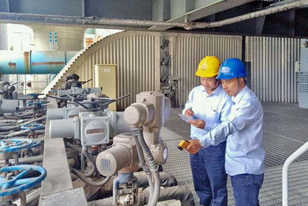 圖為該公司點(diǎn)檢人員正在進(jìn)行6號(hào)鍋爐閥門內(nèi)漏情況排查